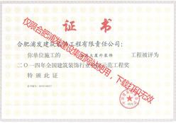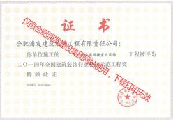 2013全國建筑裝飾行業(yè)科技示范工程獎(jiǎng)(池州金融大廈外幕墻裝飾)