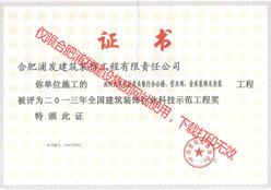 2013池州九華全國建筑裝飾行業(yè)科技示范工程獎(jiǎng)