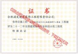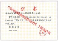 2013全國建筑裝飾行業(yè)科技示范工程獎(jiǎng)(池州金融大廈外幕墻裝飾)